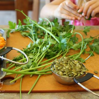- In a food processor pulse potato, chickpeas, quinoa, flour, pepitas, cilantro, parsley, onion, garlic, flax egg, mustard, chile powder, cumin, paprika and salt until the mixture is combined but slightly chunky. Form into patties and refrigerate for at least an hour but I like to leave them even longer to chill thoroughly. I make smallish patties for us, but size them to your family's needs.